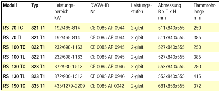 | RS 70-100-130-190 (Gas-Gebläsebrenner 192-2209 kW) |